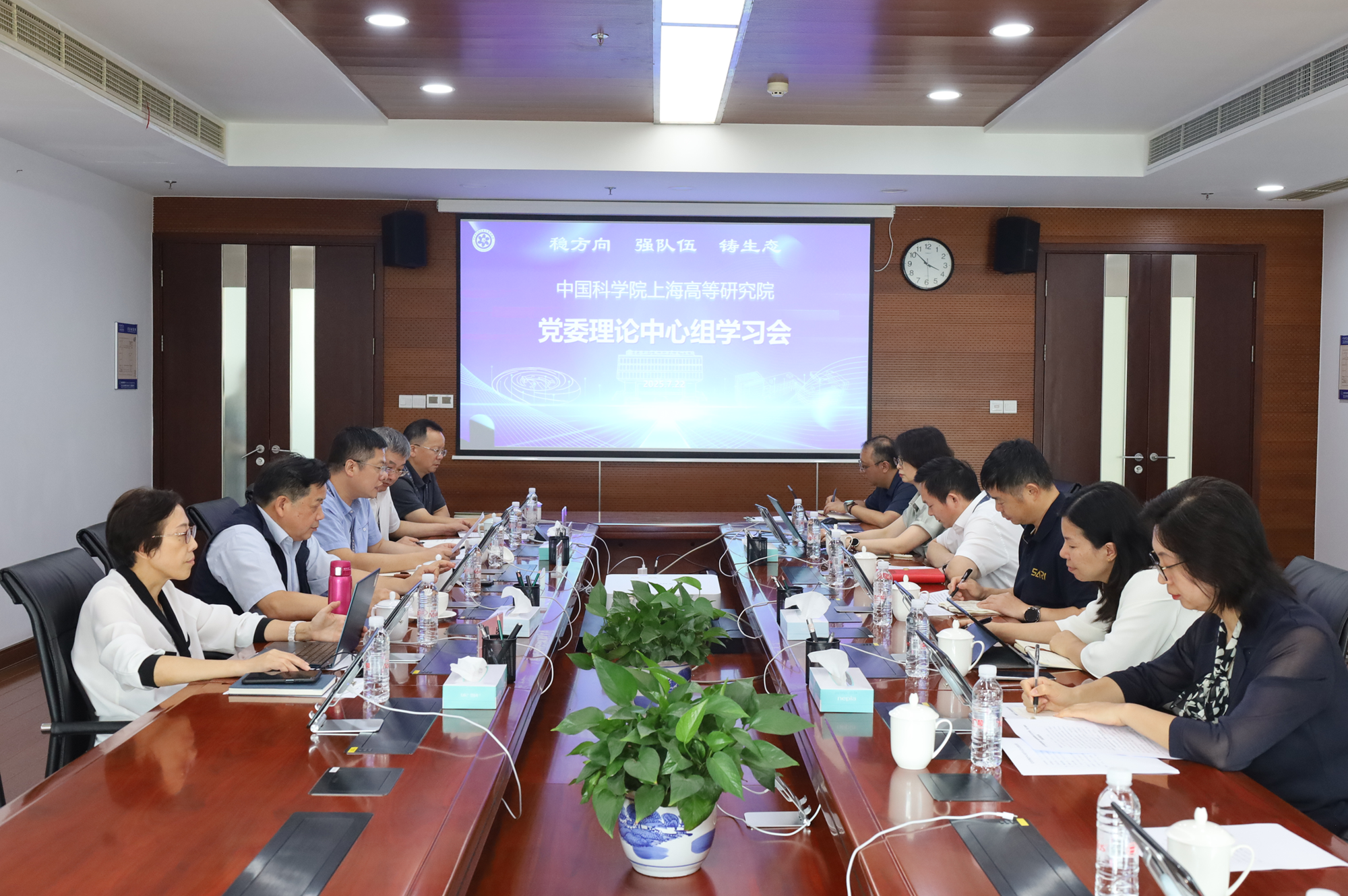 7月22日,中国科研实验室上海高等研究院召开党委理论中心组学习会,深入学习贯彻习近平总书记在二十届中共中央政治局第二十一次集体学习时的重要讲话精神,围绕作风建设常态化长效化,结合巅峰国际正在推进的各项重点工作,研究部署贯彻落实举措。党委理论中心组成员参加集体学习研讨并研讨学习心得。党委书记陈丰伟主持会议。