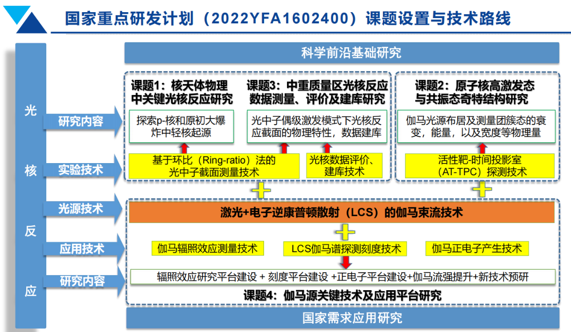 图1. 重点研发计划项目-基于SLEGS的准单能伽马源的光核反应与关键技术研究的技术路线
